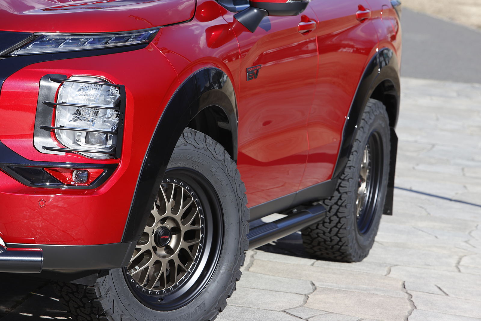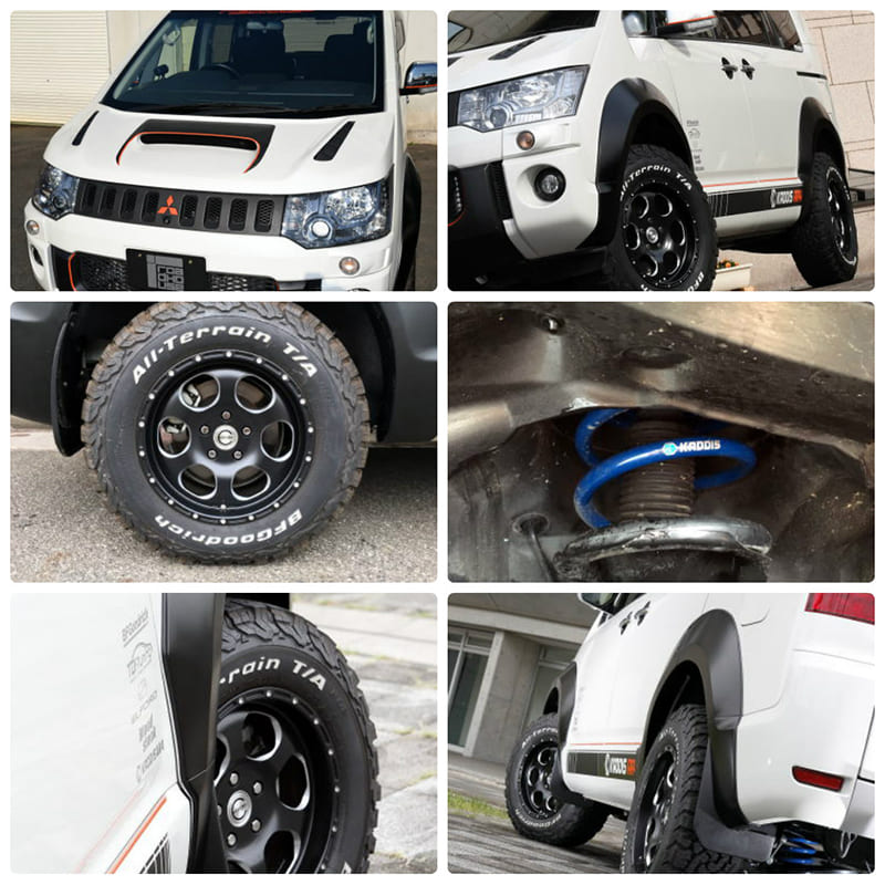 当社はデモカーのデリカD:5 5.2インチUPと7.2インチUPの2台を展示及び物販ブースにてKADDISブランドのデリカD:5/デリカミニ/アウトランダー用アイテムの販売をさせていただきます。